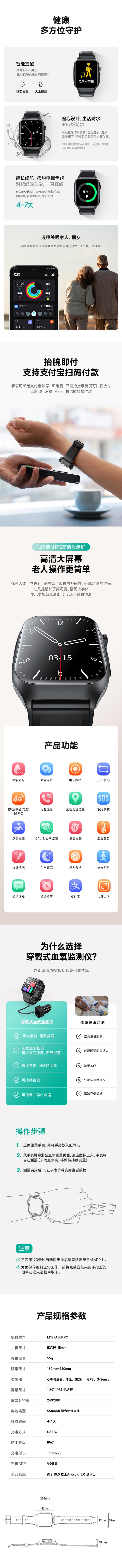 H102C智能健康手表:守护长辈健康的智能管家 整合健康监测、安全防护、亲情互联于一体,满足老年人日常健康管理与安全保障需求,成为子女远程关爱的智能助手。 涵盖血氧心率监测、跌倒检测、多重定位、4G通话等20+项功能,全方位守护长辈健康与安全,操作简单适配老年用户。